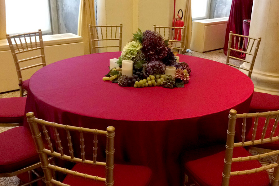 - raccolta e stoccaggio di tovagliati: tovaglie, tovaglioli, runner, coprisedie.